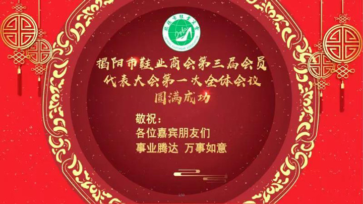 2018年1月7日,商會(huì )在榕江大酒店召開(kāi)“揭陽(yáng)市鞋業(yè)商會(huì )第三屆會(huì )員代表大會(huì )第一次全體會(huì )議”。市民政局領(lǐng)導及一百多家商會(huì )會(huì )員代表參加了會(huì )議。